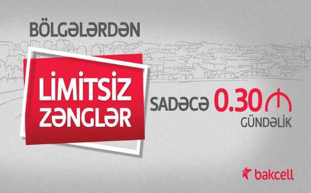 Yeni təklifin şərtlərinə əsasən, “Bakcell”in CİN abunəçiləri öz telefonlarında *545#Yes kodunu yığıb paketi aktivləşdirə və günə sadəcə 0.30 AZN ödəyərək regionlardan 24 saat ərzində limitsiz zəng edə bilərlər.