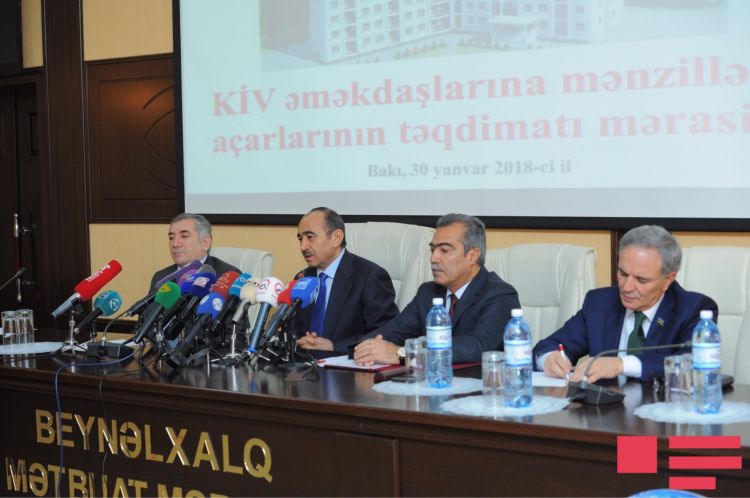 Daha sonra mənzillərin açarları jurnalistlərə təqdim edilib.