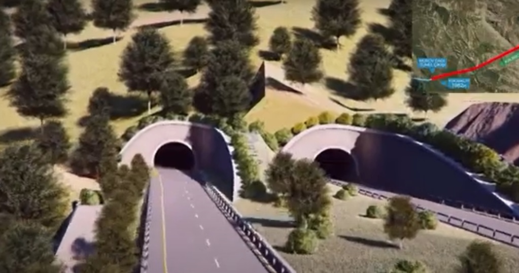 Bu hissədə uzunluğu 11658, hərəkət hissəsinin eni bir istiqamət üzrə 12 metr təşkil edən dünyanın ən uzun avtomobil tunellərindən biri olacaq Murovdağ tunelinin inşası davam etdirilir.
