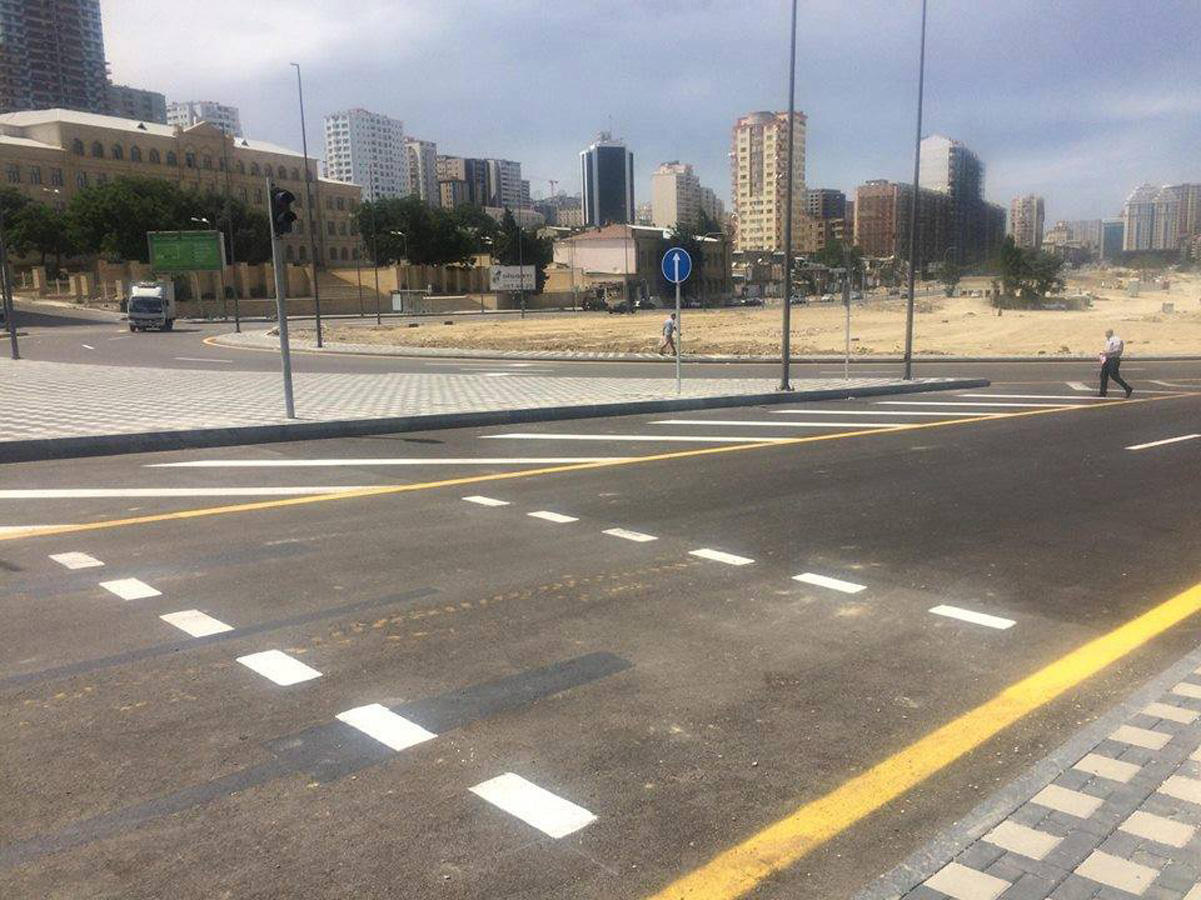 Bildirilib ki, nişanlanma və yol-cizgi xətləri şəhərimizin inkişaf edən simasına uyğun olaraq daha müasir tərtibatda həyata keçirilir. Belə ki, paytaxtın digər küçə və prospektlərindən fərqli olaraq burada işıqforlarla nizamlanan piyada keçidləri qanunvericiliyin tələblərinə uyğun olaraq qırıq xətlərlə işarələnib. Piyadaların yolun hərəkət hissəsində diqqətli olmaları üçün yerə xəbərdaredici məlumatlar yazılacaq.