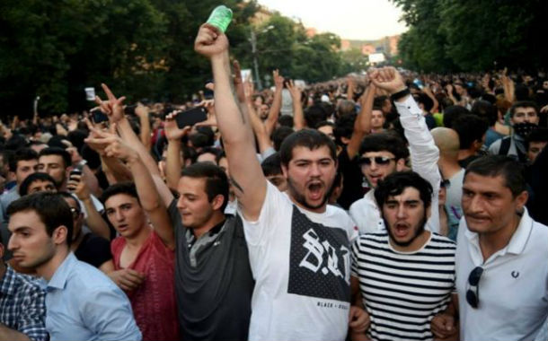 Trend-in məlumatına görə, buna baxmayaraq Yerevanda etiraz aksiyası davam edir.